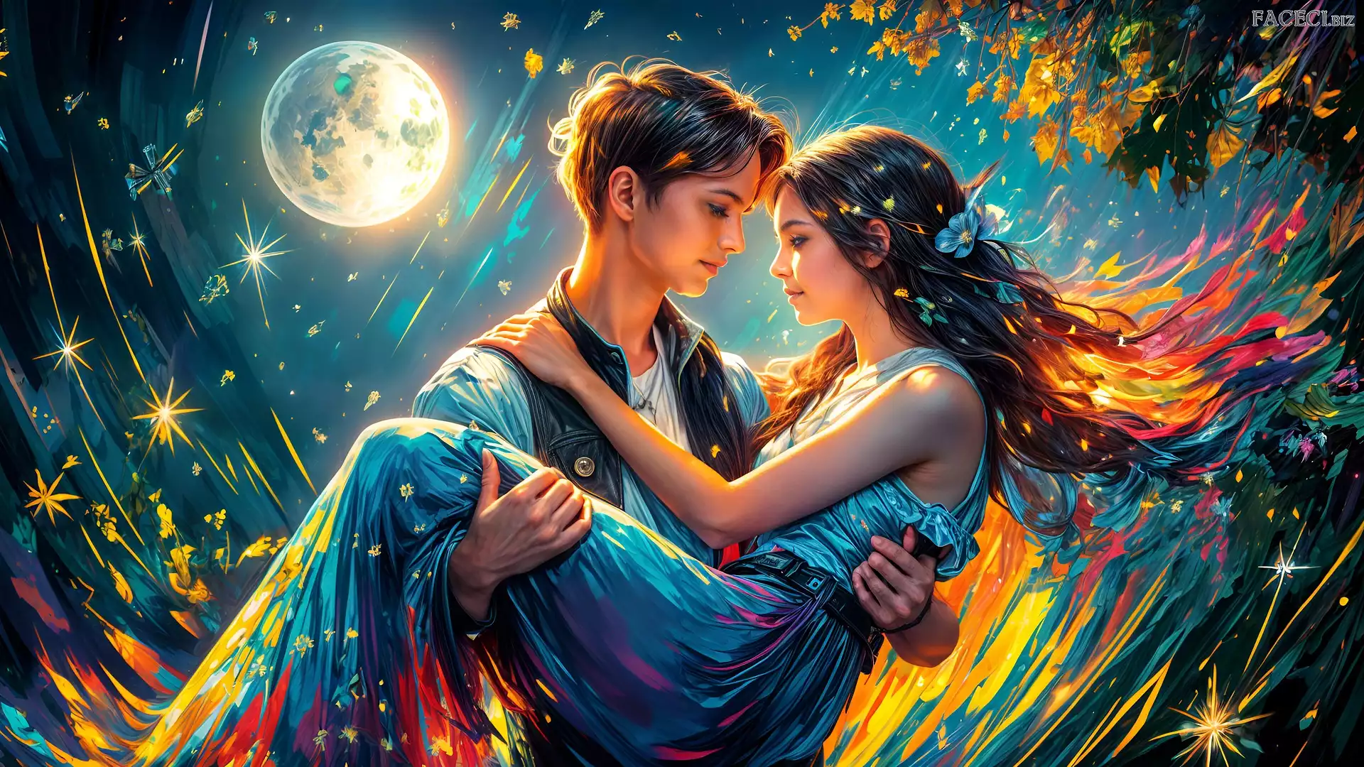 Dziewczyna, Chłopak, Grafika, Księżyc - faceci.biz